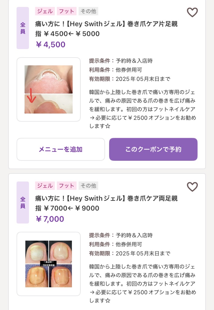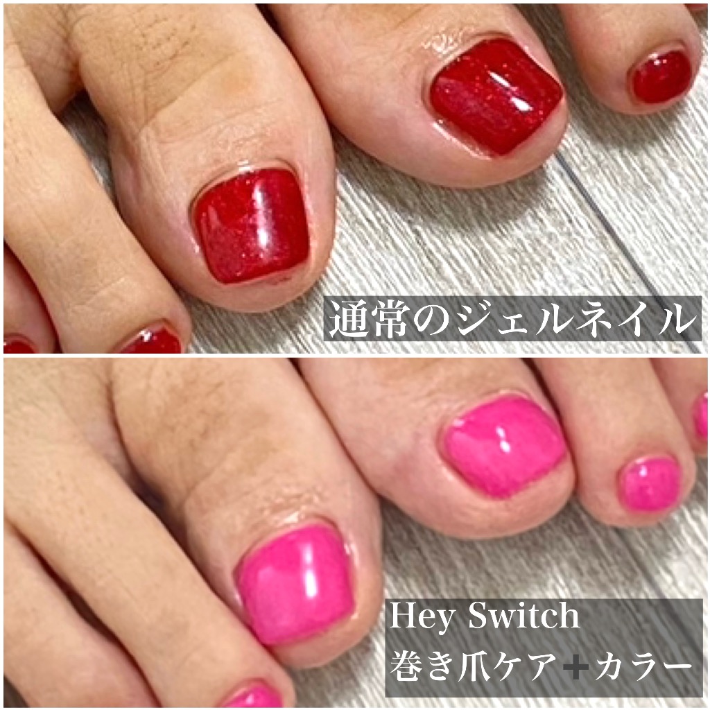 まだまだ暑い日が続きますね。フットネイルをしたいけれど、巻き爪が気になる方に、「ヘイスイッチ」ジェルを使用した巻き爪ケア付きワンカラーを9900円にてご提供しております。どうぞご利用くださいませ☆