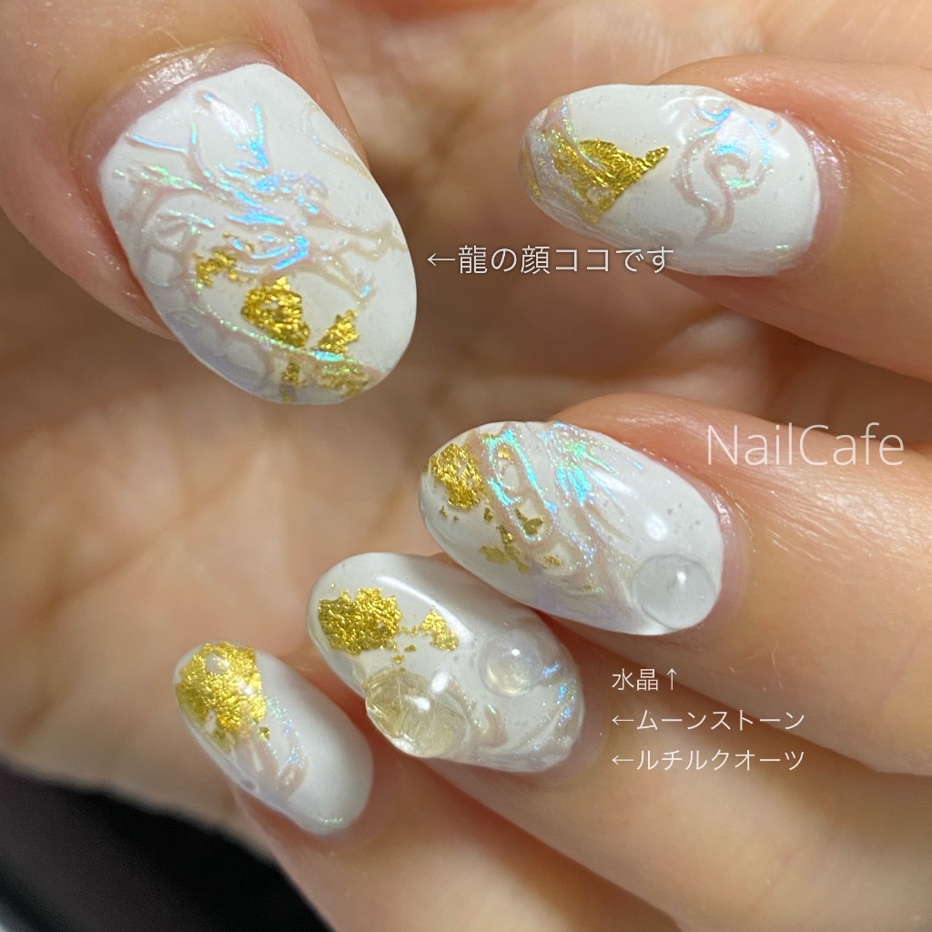 本物の金箔と龍でおめでたいネイルデザインです♡