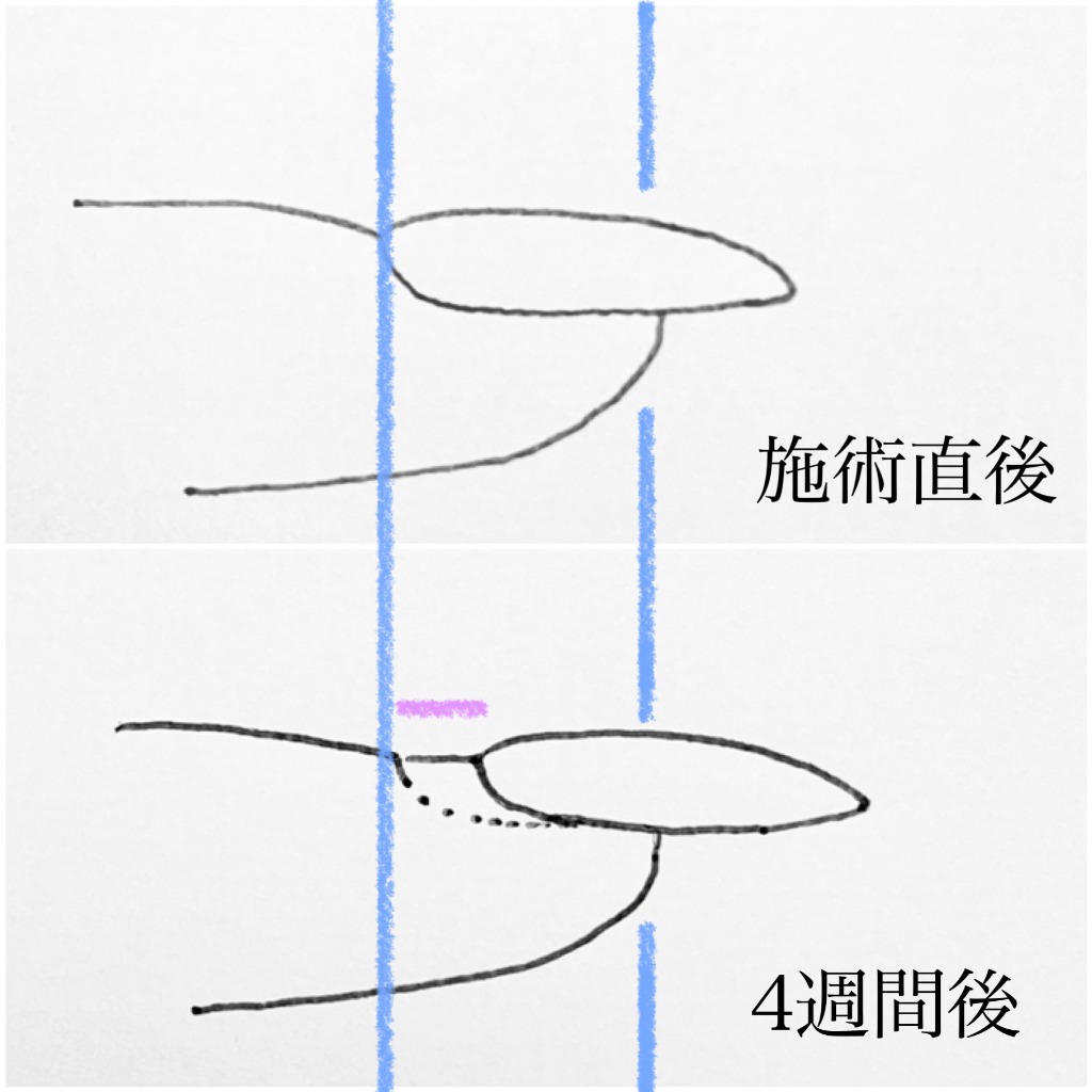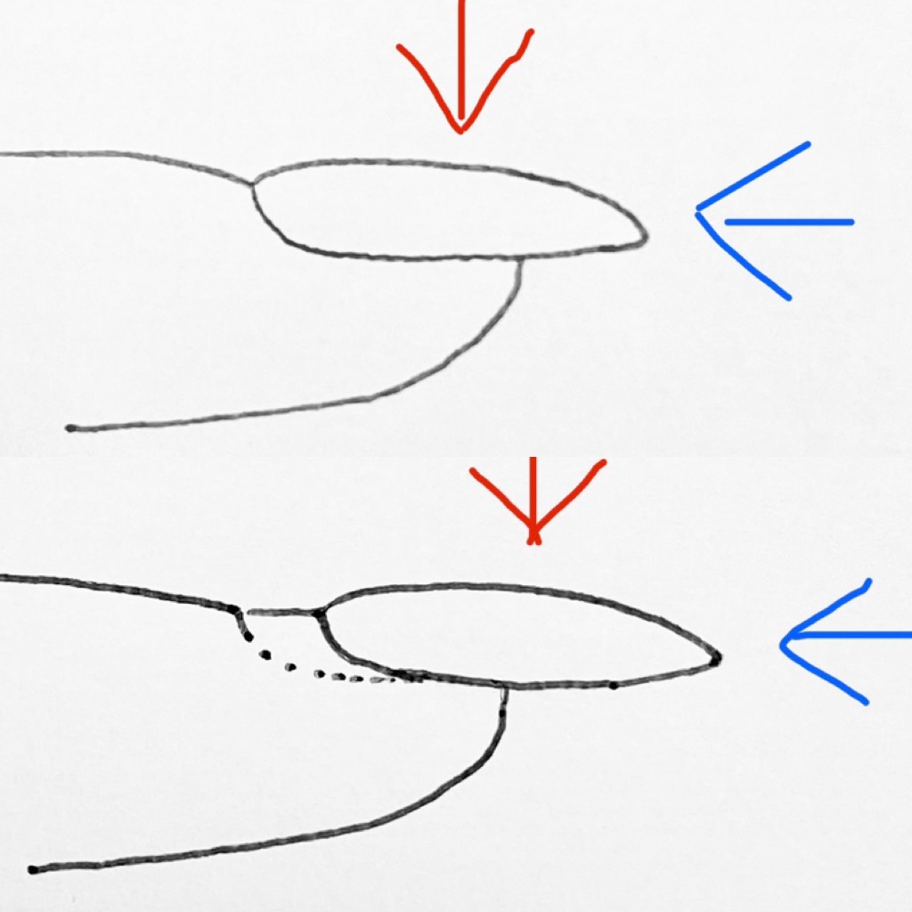図1を見ていただいたら分かるように、指のお肉とくっついている面積が減っていきます。