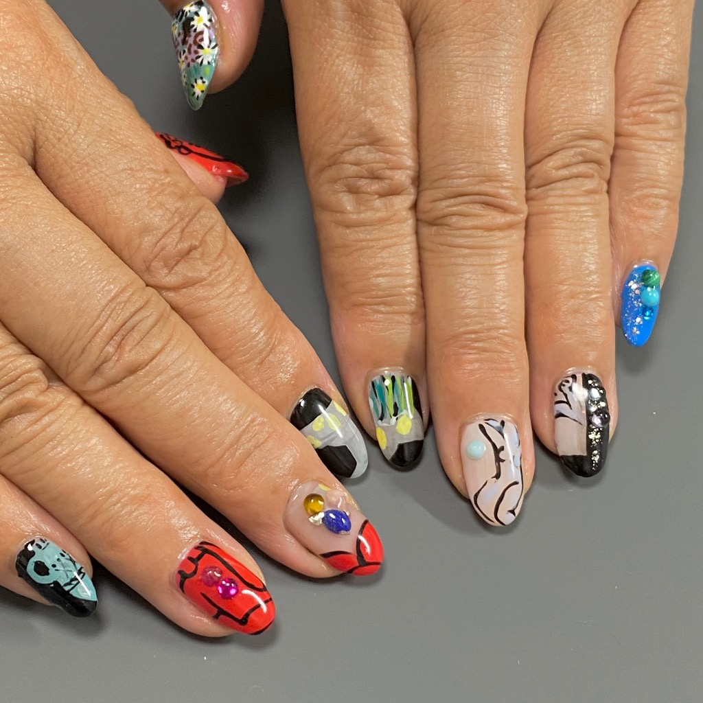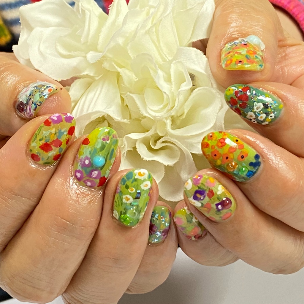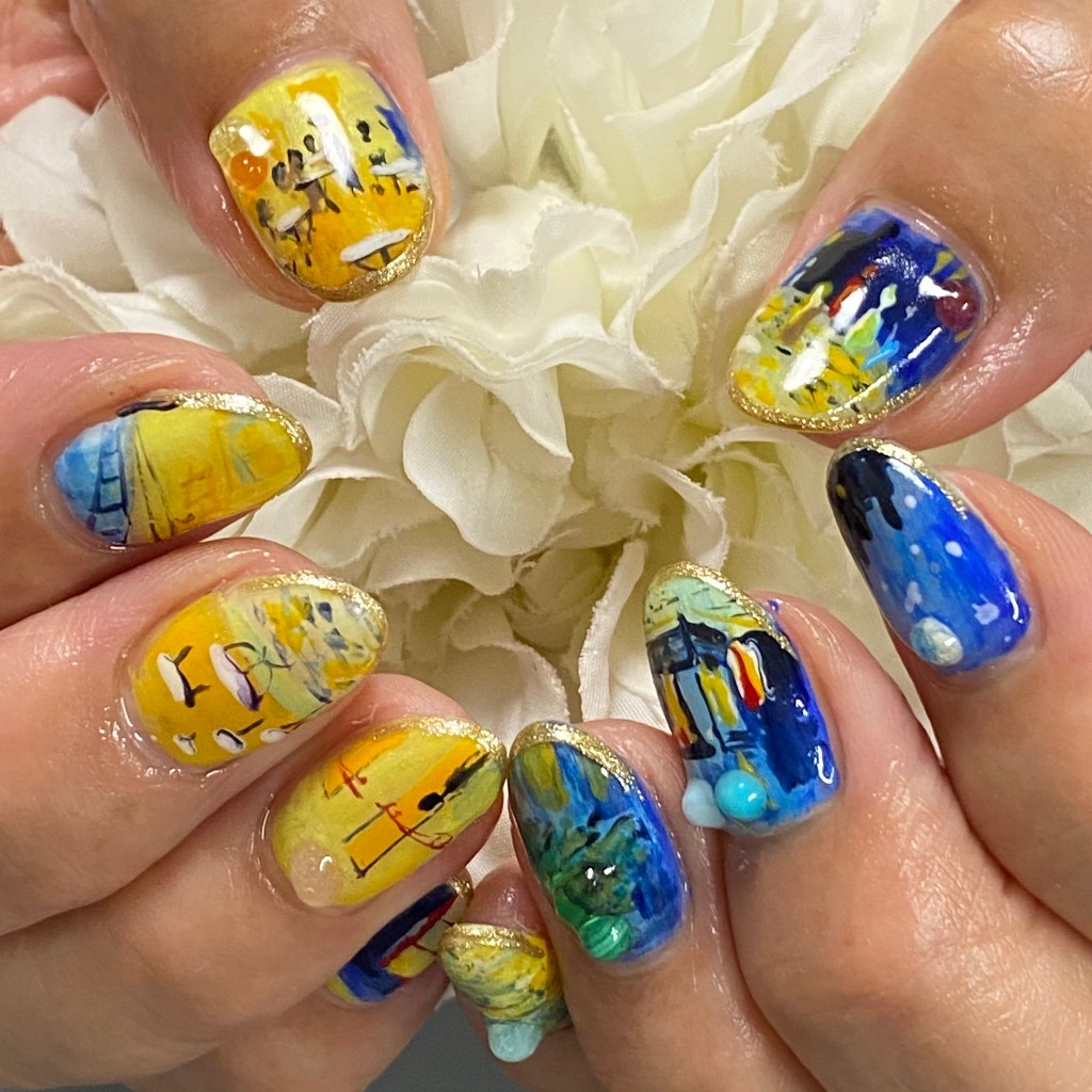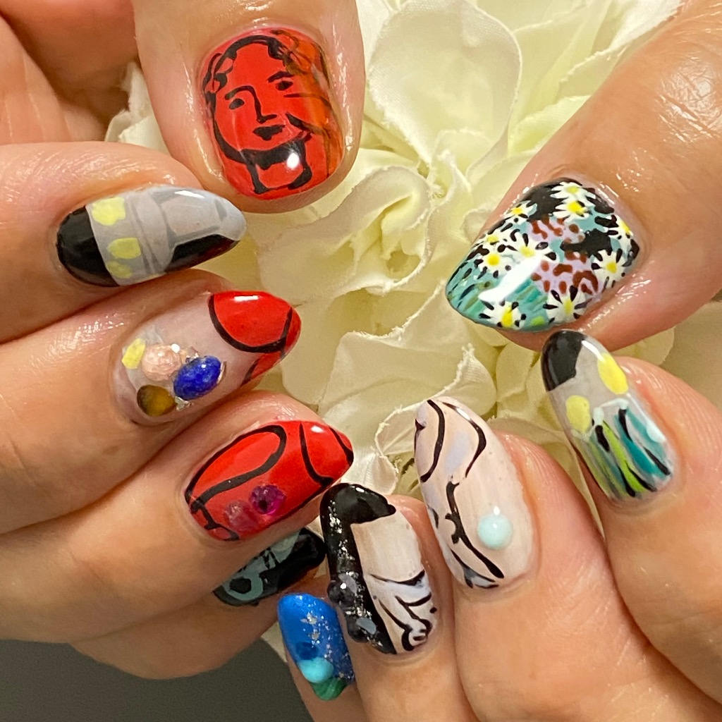 絵画ネイル Expo 2025 2024年お客様ネイル 2023年お客様ネイル パワーストーンネイル 花柄ネイル フットネイル 絵画ネイル 有名な昔の絵画から現代アートまで、お好きなアートをイメージしたネイルに仕上げました。 西洋の有名絵画だったり 元の絵を真似て、隣の爪に繋がるように描いたり、その作家の個性があらわれている部分を抽出したり。 日本のアーティストだったり クリムト ピカソ シャガール ゴッホ 岡本太郎 近代・現代1 絵本 オズの魔法使いの表紙絵をイメージしました マティス ピカソ2 ゴッホ2 Expo 2025 大阪関西万博2025に関連したネイルデザイン ミャクミャク ミャクミャクネイル 2024年お客様ネイル 1月 40代A様60代Y様40代M様 2月 2023年お客様ネイル 9月① 40代H様40代I様20代H様60代I様 9月② 40代H様 10月 30代女性O様70代女性S様20代H様40代M様 11月 50代H様40代S様30代S様 12月 50代H様20代H様ご夫妻40代A様70代S様 パワーストーンネイル Leilani stone ハワイの聖地で浄化してからやってきた、ネイル用天然石。誕生石もありますよ☆ワンカラーのアクセントにも可愛いです。 アートネイルにも アートとの組み合わせも無限大! Lサイズもあります 花柄ネイル 色々なお花柄をご紹介します。 フットネイル